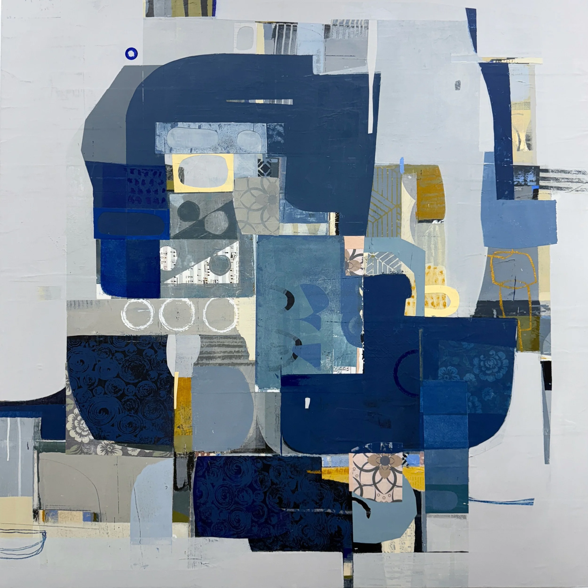 Her creative process is a journey of discovery. She uses mixed mediums, collage, and acrylic polymer paints to build up layers until the composition reaches its final form. A graduate of the Rhode Island School of Design (BFA), her work is held in numerous private and corporate collections, including Adobe Systems, Biogen, J.W. Marriott, and Cisco Systems.